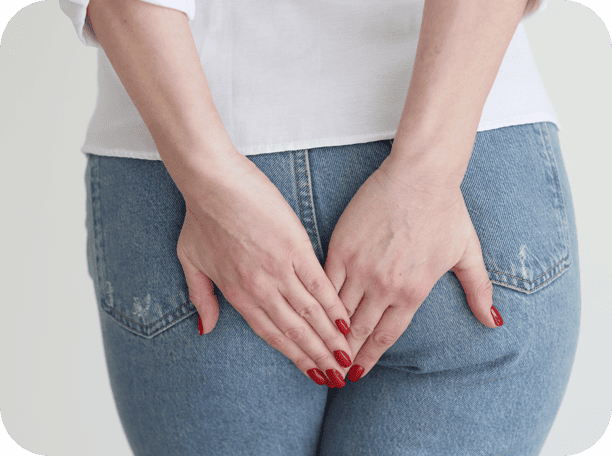 直腸や肛門回りの静脈が密集している場所が膨れあがり、しこりになった状態です。このしこりを痔核といい、発生する場所によって内痔核と外痔核に分けられます。 直腸粘膜の下にできるものを内痔核、肛門外側の皮フの下にできるものを外痔核と呼びます。